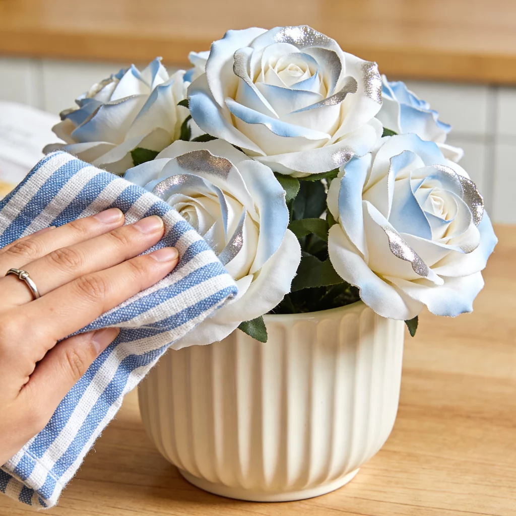 Four cleaning steps of artificial flowers