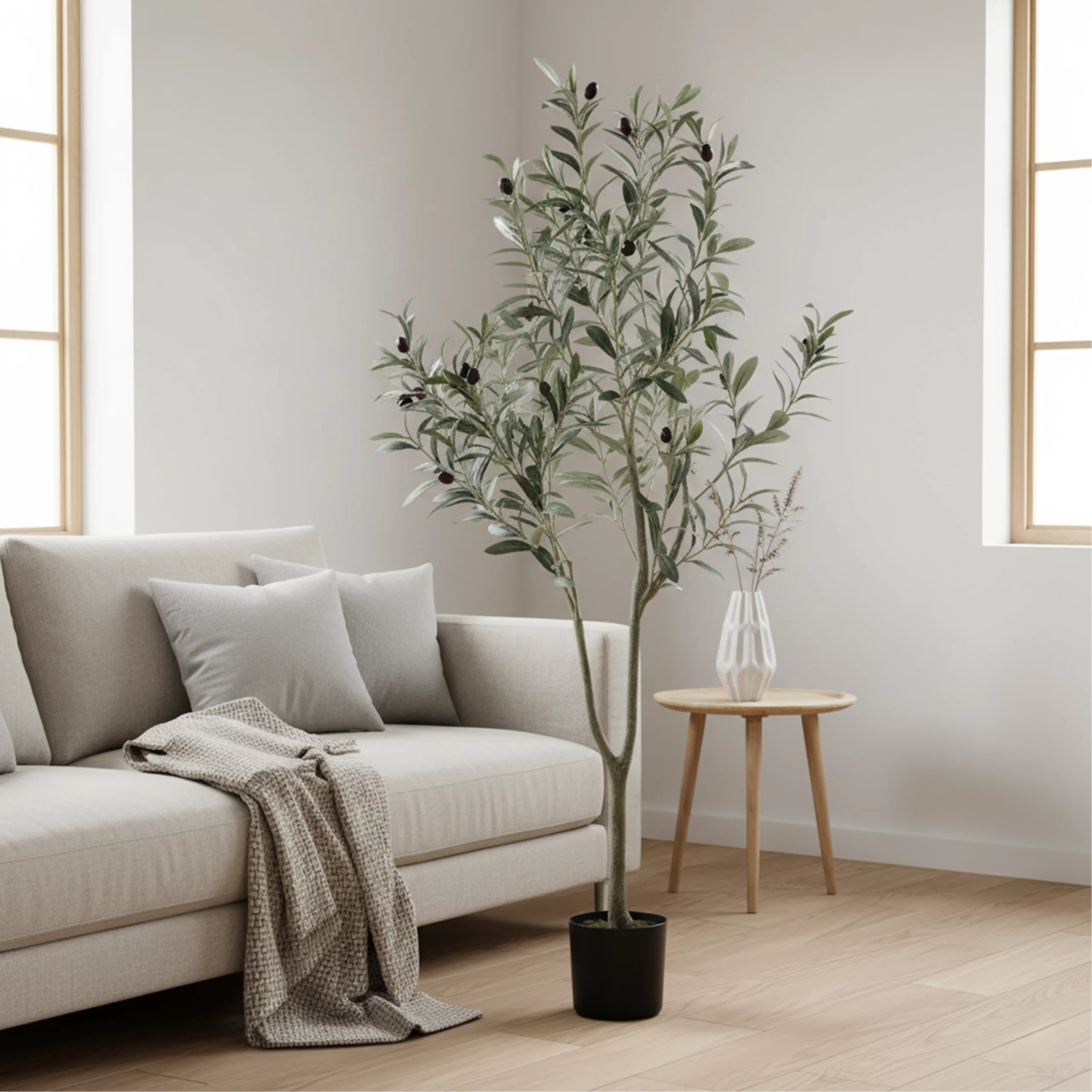 Ideal for restaurants, hotels, shopping centers, and interior plant displays, this artificial olive tree provides elegant greenery without maintenance and is suitable for wholesale supply and project decoration.