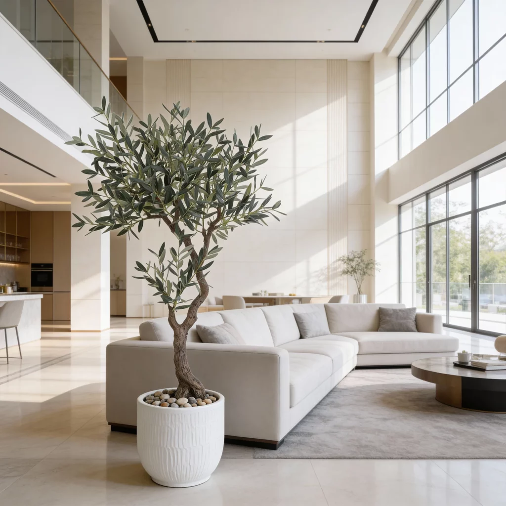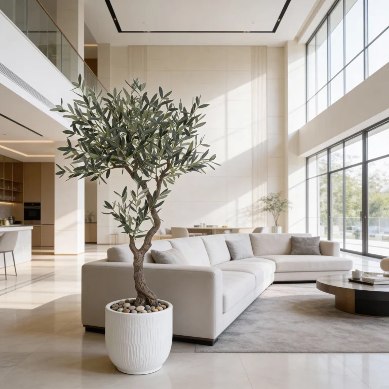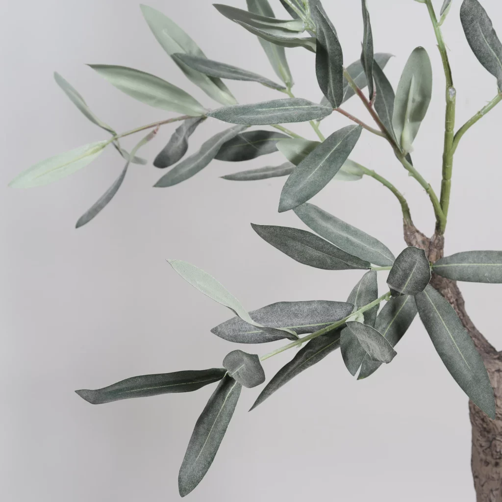 The 150cm Artificial Olive Tree without Fruits (KD) features slender branches and soft green olive leaves, offering a clean and modern Mediterranean look. Without fruits, this faux olive leaf tree fits perfectly into minimalist interiors, offices, cafés, and retail spaces. Its balanced proportions and natural leaf texture make it an excellent choice for artificial greenery wholesale buyers and B2B décor projects requiring subtle, elegant greenery.