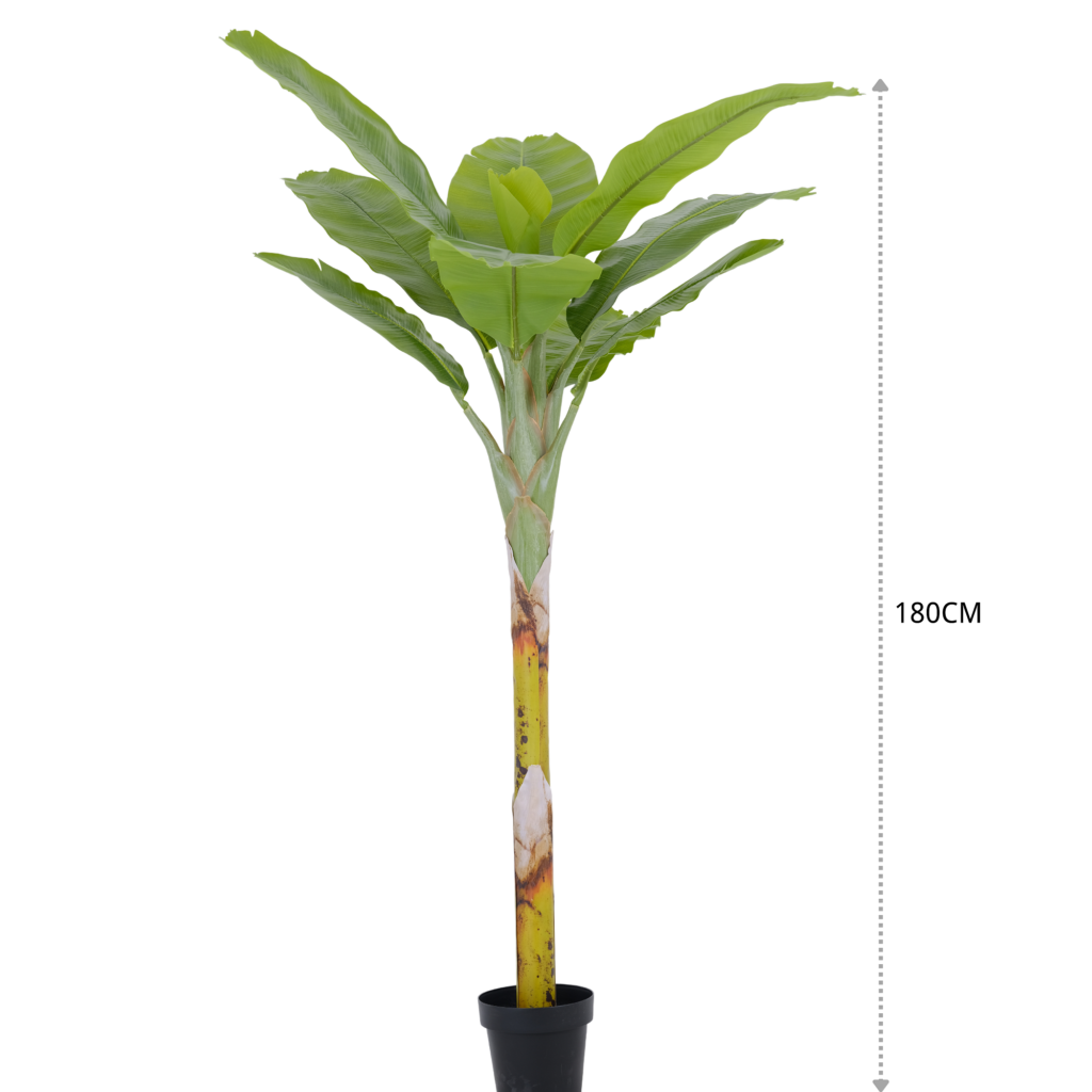 Discover a 180cm artificial banana tree from a leading fake plant manufacturer in China. Realistic design, perfect for home and office décor. Maintenance-free and long-lasting.