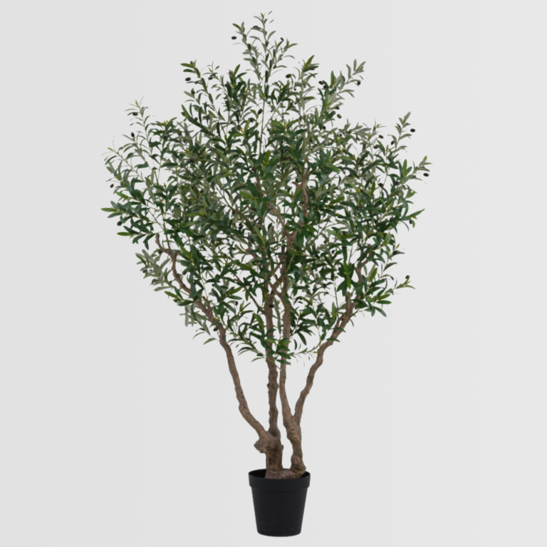 The 240cm Artificial Olive Tree (KD) features a strong, thick main trunk with mud-colored branches and dense dark green foliage. Designed with adjustable branches and lifelike olive fruits, this tall fake olive plant delivers a highly realistic texture and natural color depth. Its full silhouette and authentic detailing make it ideal for large interior spaces, commercial environments, and decorative landscaping projects, offering lasting beauty without maintenance.