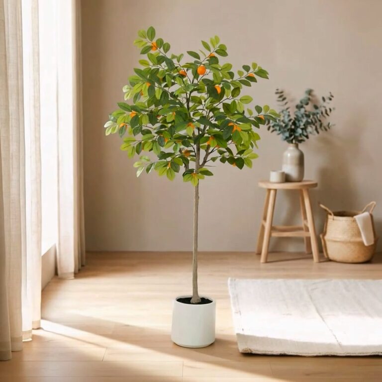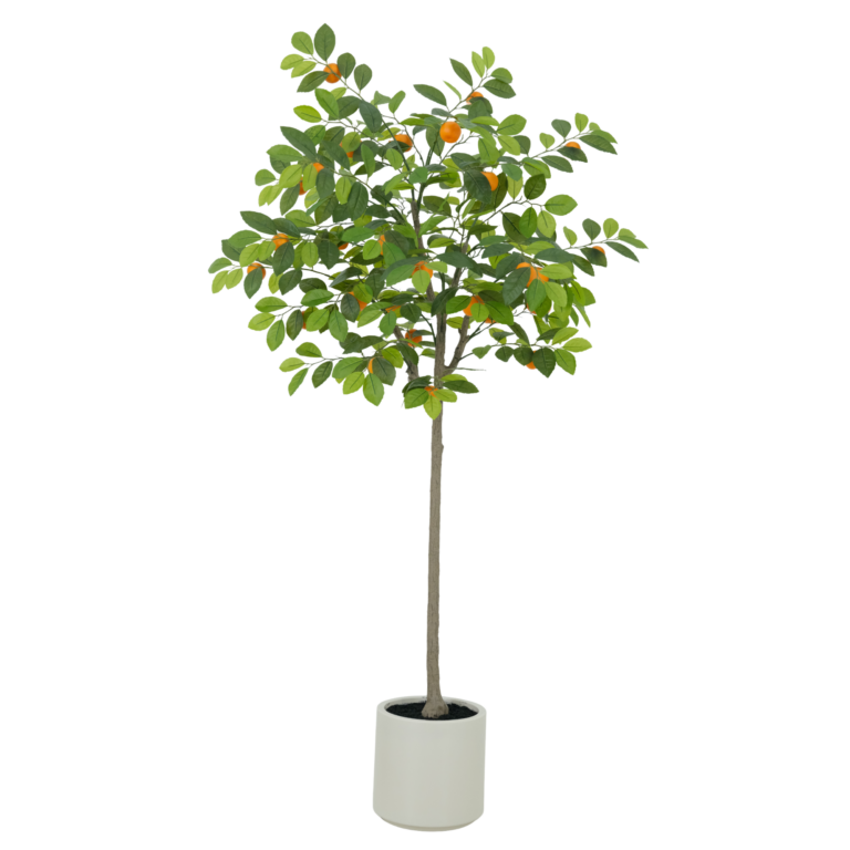 The 150cm Artificial Citrus Tree with Fruits features vibrant green foliage and realistic citrus fruits that replicate the charm of a living citrus tree. Its dense canopy and natural trunk design bring a refreshing, lively feel to offices, hotels, cafés, retail spaces, and residential interiors. This faux citrus tree offers long-lasting greenery and visual appeal with zero maintenance—perfect for artificial greenery wholesale buyers and large B2B décor projects seeking high-quality decorative plants.
