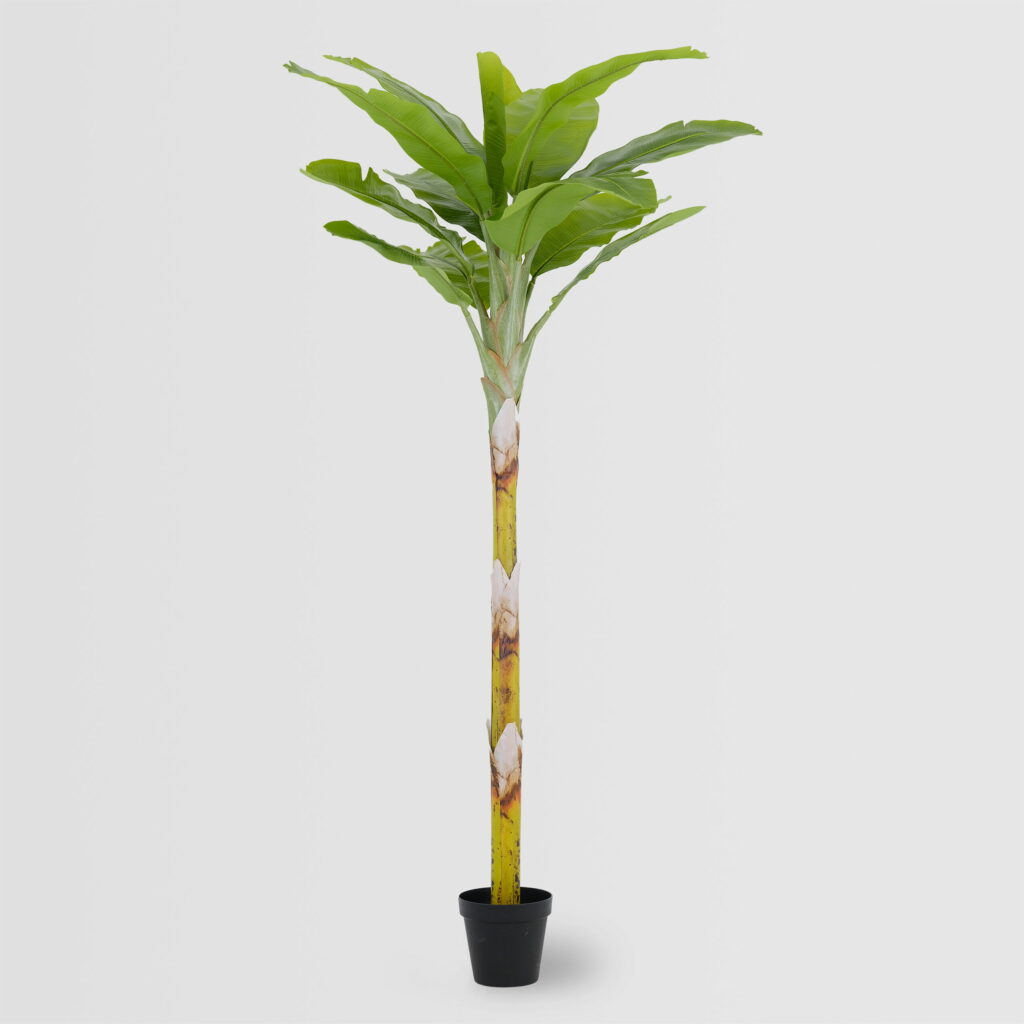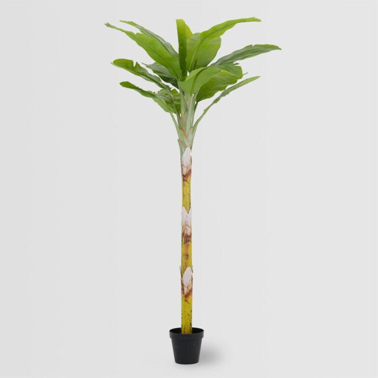The 250cm Artificial Banana Tree (KD) showcases a tall, upright silhouette with a sturdy, realistic trunk and wide tropical leaves. Its impressive height and rich greenery make it a statement piece for hotels, restaurants, showrooms, offices, luxury retail spaces, and high-ceiling interiors. With KD packaging for convenient transport and installation, this large-size faux banana plant is the perfect solution for big B2B décor projects and artificial greenery wholesale buyers seeking a premium, maintenance-free tropical feature.