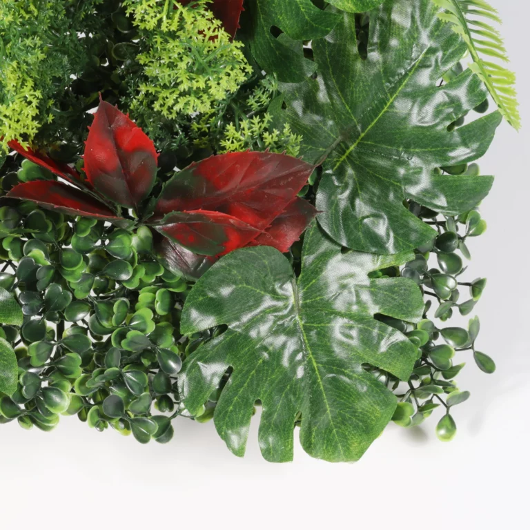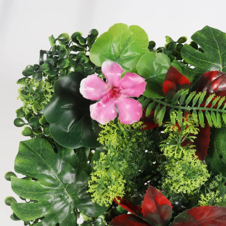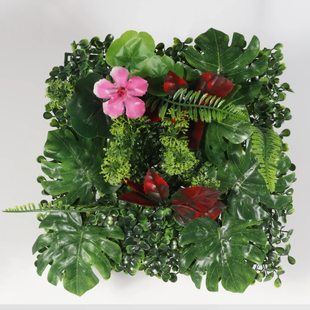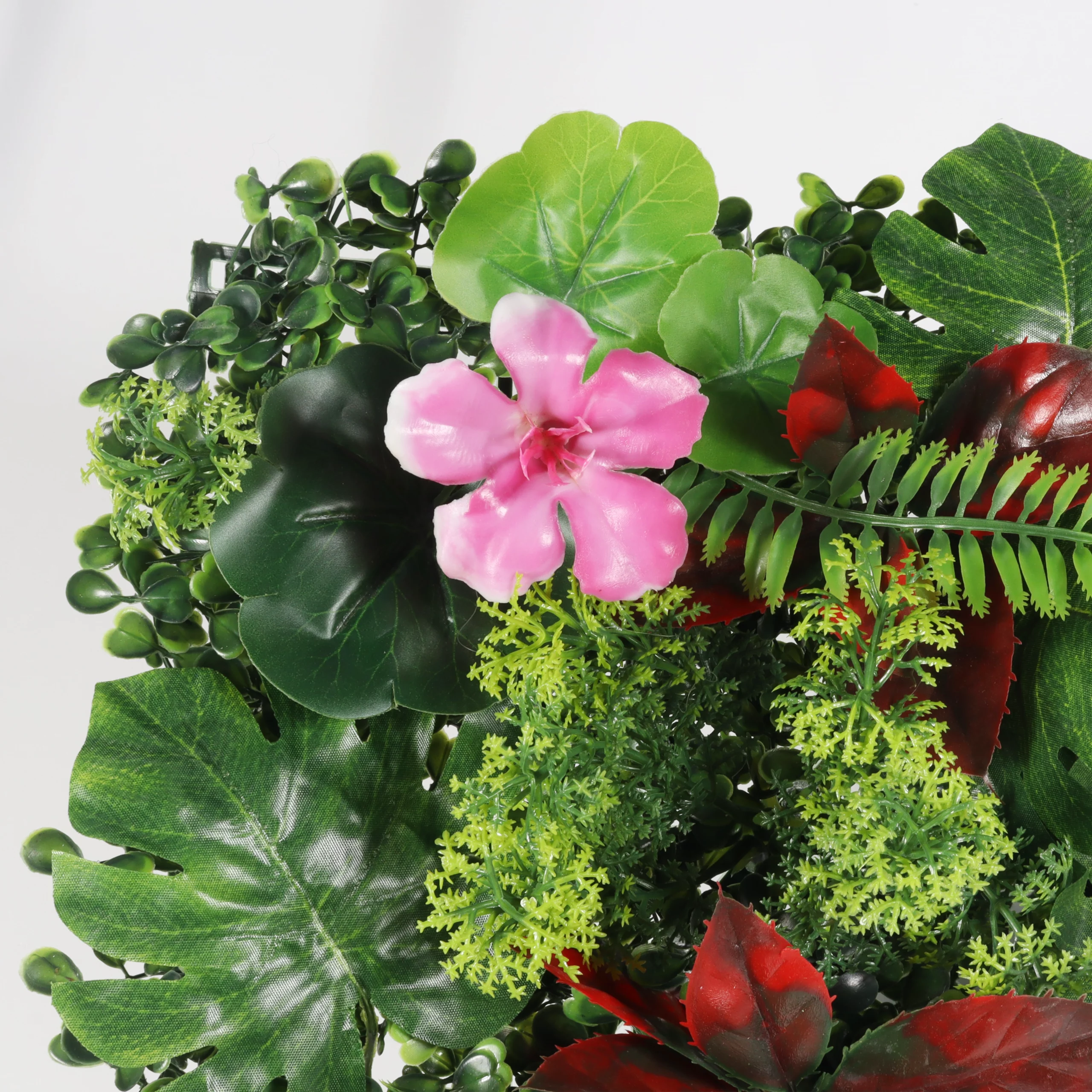 The 25cm*25cm Flowering Artificial Plant Wall is a premium decorative panel featuring a lush blend of Monstera, Anthurium, and delicate ferns, topped with elegant pink blossoms. This small-format square panel offers a soft, botanical charm with its multi-layered floral design, making it a standout choice for high-end commercial spaces. Its compact 25x25cm size allows for flexible, creative installations in areas where detailed, colorful greenery is required.