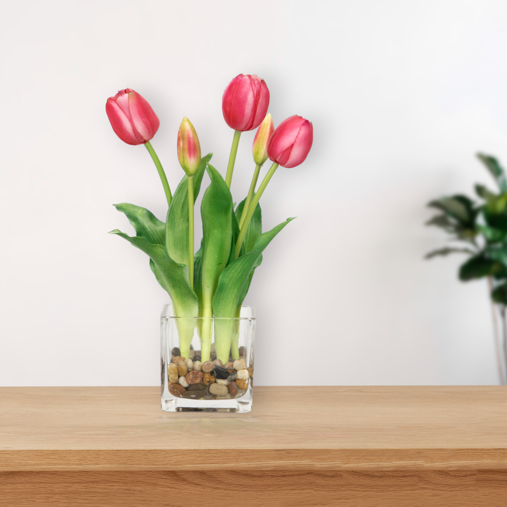 Product Name: 28 CM Real Touch Tulips Flowers For Hotel Home Office Decoration Item No.: 23STZ293198 Height: 28 cm Color: Pink Material: Plastic, PU, Glass MOQ: 500 PCSProduct Description