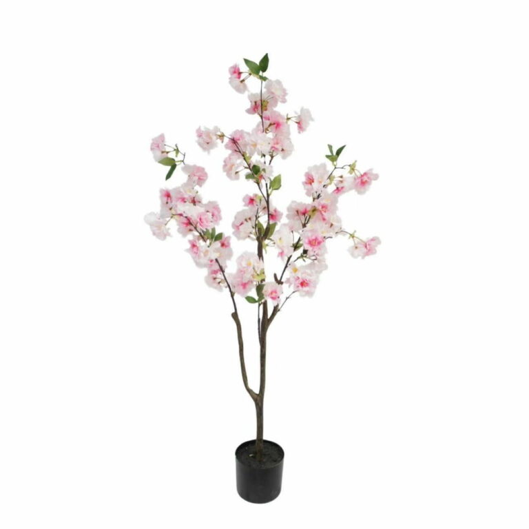 Elegant Artificial Cherry Blossom Tree with dense pink blooms, designed for weddings, hotels, and retail interiors. Perfect for artificial plants bulk and artificial greenery wholesale buyers seeking high-impact commercial floral décor.